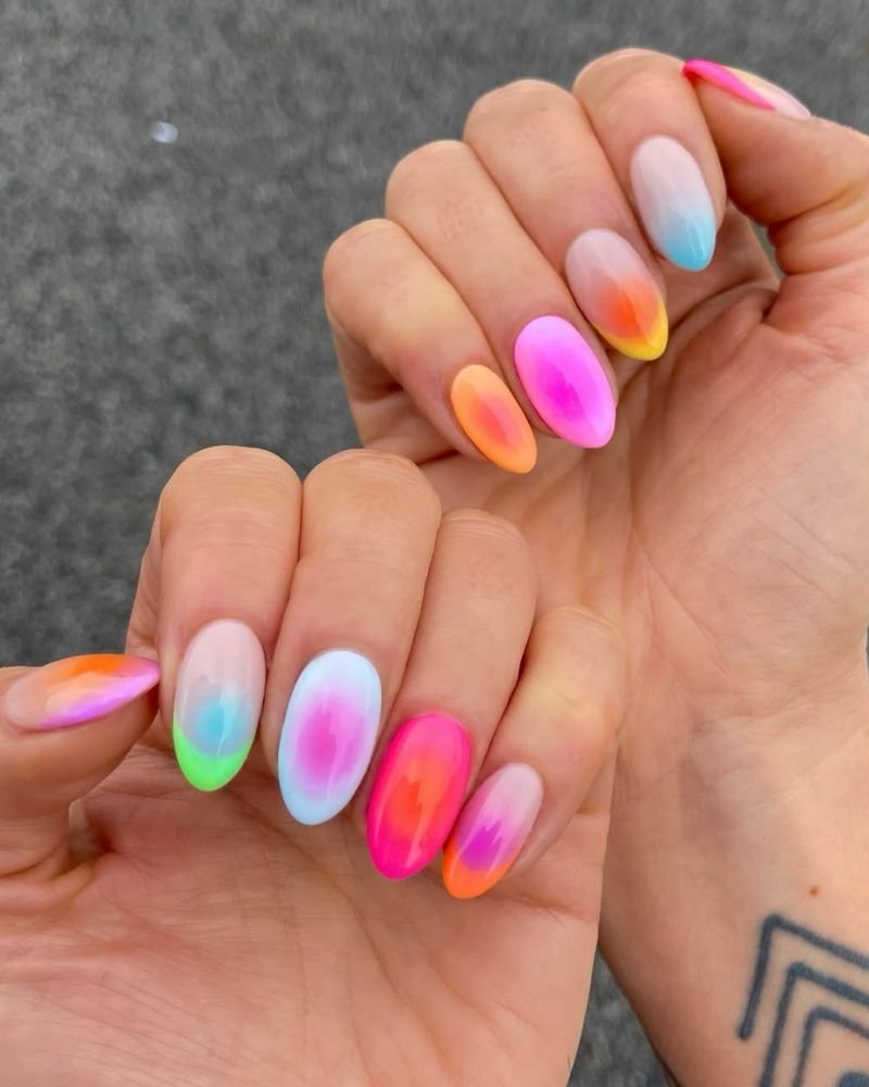 Tags: gradient nails, colorful nails, chrome nails