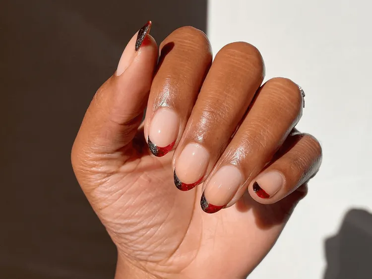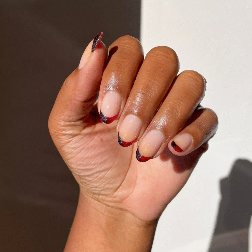 Swap the usual white tips for dark purple to add a mysterious vibe. This deep color is perfect for the season and gives you a chic, spooky look.