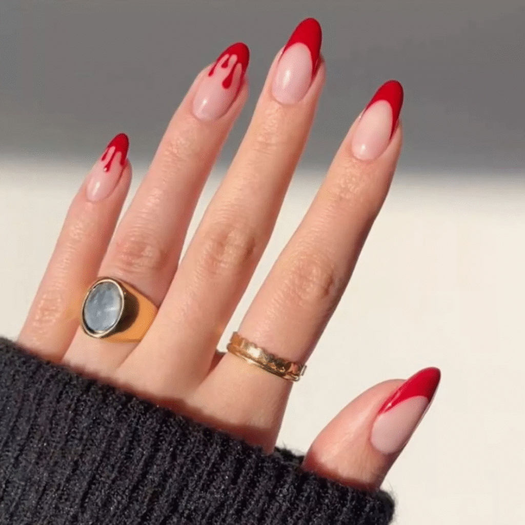 Imagine your French tips dripping with blood! This fun and gruesome design can be done using red polish at the tips, giving the appearance of blood dripping from the edges. Perfect for a creepy Halloween look!