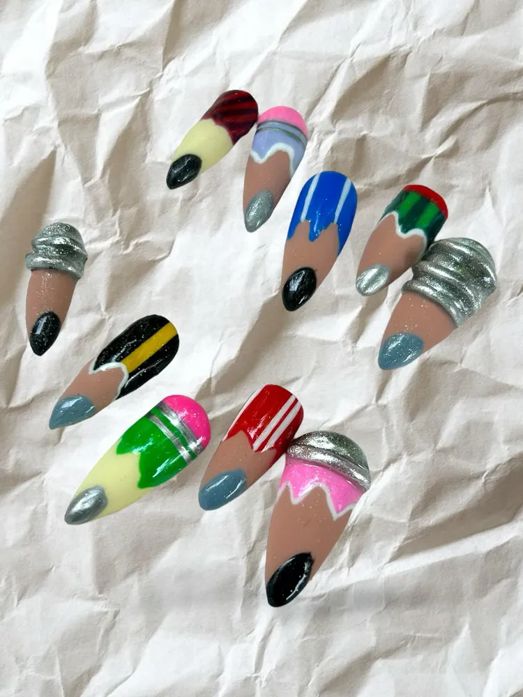 Back-to-school season is here, and what better way to celebrate than with pencil-inspired chrome nails? These nails are sharp and stylish, featuring a chrome finish that adds an extra flair. You’ll never be short on pencils with this trendy design!
