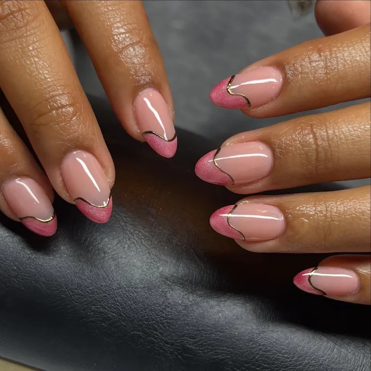 Bring back the fun vibe of the ’70s with a lava lamp-inspired design. This nail look combines warm gold, yellow, and orange tones with swirly chrome accents. It’s nostalgic, vibrant, and perfect for anyone looking to add some whimsy to their look.