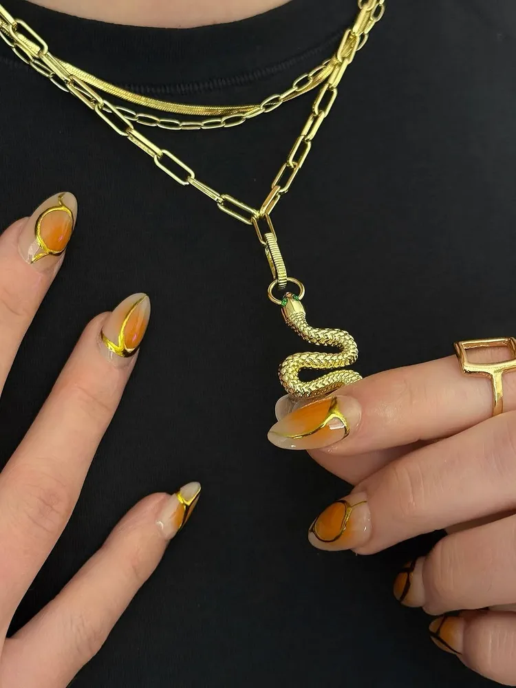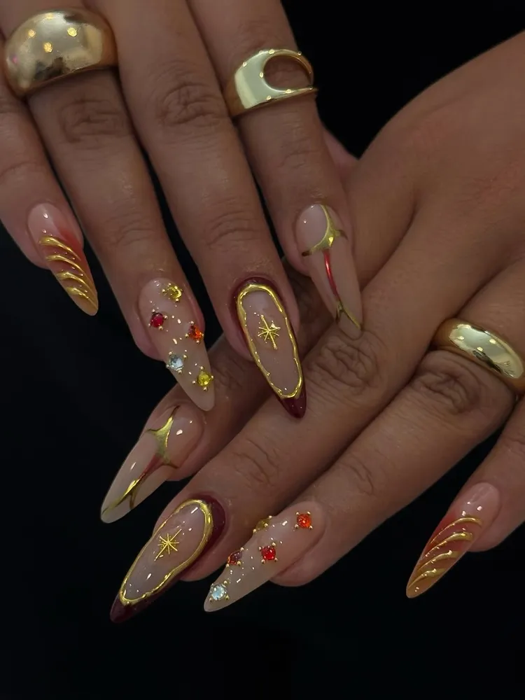Take the orange-to-nude aura trend and elevate it with 3D gold chrome accents. The result is a warm, glowing manicure that’s ideal for fall, combining the best of both worlds.