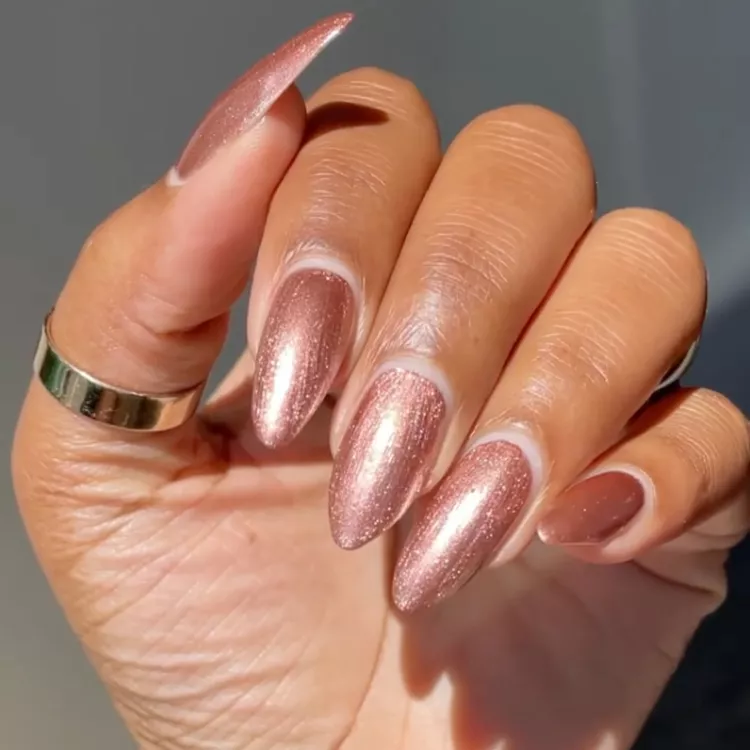 Rosy gold chrome nails are a great way to rock mixed metals on your nails. This look is timeless and chic, especially if you use a shade like OPI’s Intentions Are Rose Gold. It’s perfect for both casual and formal occasions.