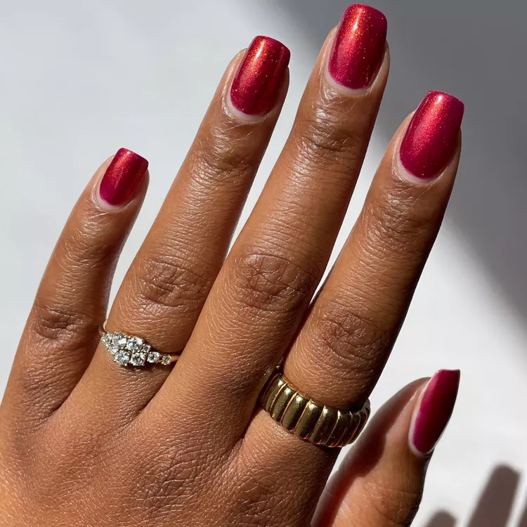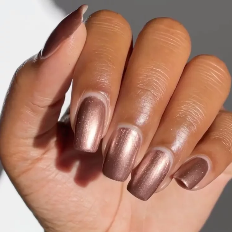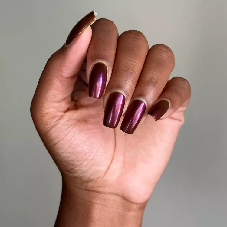 A mix of brown, purple, and red hues create a glossy finish that’s perfect for the fall season. It’s moody, sophisticated, and not too dark—ideal for those who like a little drama without going overboard.
