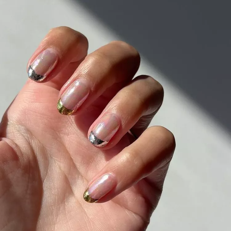 Can’t choose between gold and silver? Go for both! Mixing silver and gold chrome powder on a French manicure creates a stylish and elegant design that’s perfect for any occasion.