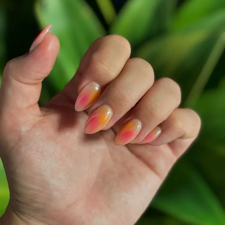 Aura nails get an autumn twist when paired with chrome. The subtle color transition in the middle of the nail creates a glowing effect, and the chrome powder enhances that shine, making the aura even more striking.