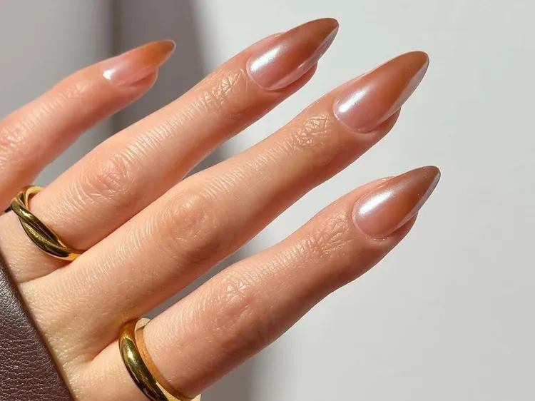 Almond-shaped nails are a popular choice, and when you add a chocolate chrome finish, the result is stunning. This design is simple yet striking, with the chocolate chrome nails demanding attention and giving off a sophisticated vibe.