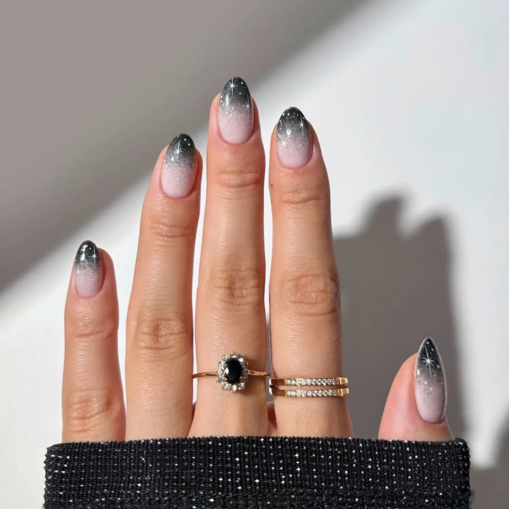 For a spooky-chic look that works well past Halloween, try a black to clear ombré chrome design. Add some white starbursts on top for an extra touch of mystery. This look is dark and dramatic, perfect for those who love a bit of edge.
