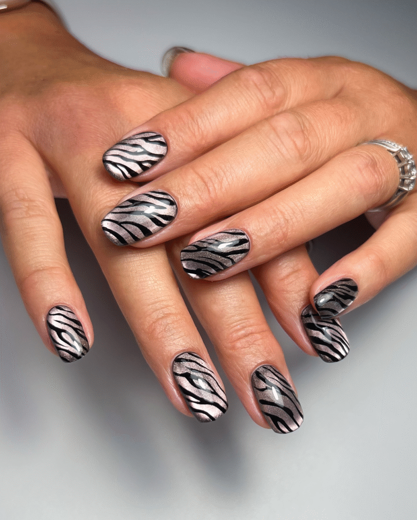 Zebra print nails are the ultimate way to add some bold stripes to your look. The black and white pattern stands out in such a classy way. Whether you want an entire set of zebra stripes or just a few accent nails, this design screams confidence. It’s the perfect design for someone who loves a bit of edge in their style.