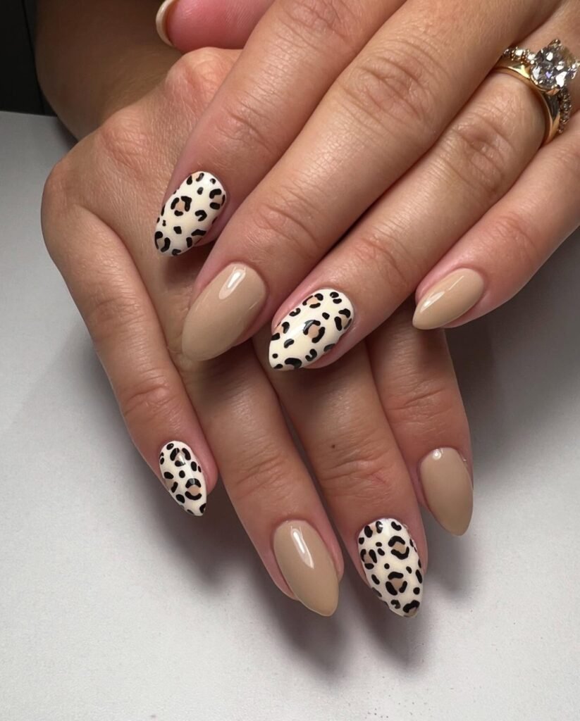 Leopard print nails never go out of style, and they look especially stunning in neutral tones. A mix of beige, brown, and black spots creates a sophisticated yet wild look. These nails are perfect for a subtle touch of animal print without going too overboard. You can even try mixing them with solid colors like nude or dark burgundy to keep things balanced.