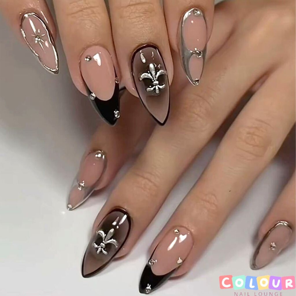 For those who like a little twist on classic designs, black nails with silver tips add a stylish contrast. The dark base and shiny tips give your nails a modern, edgy look that’s still classy.