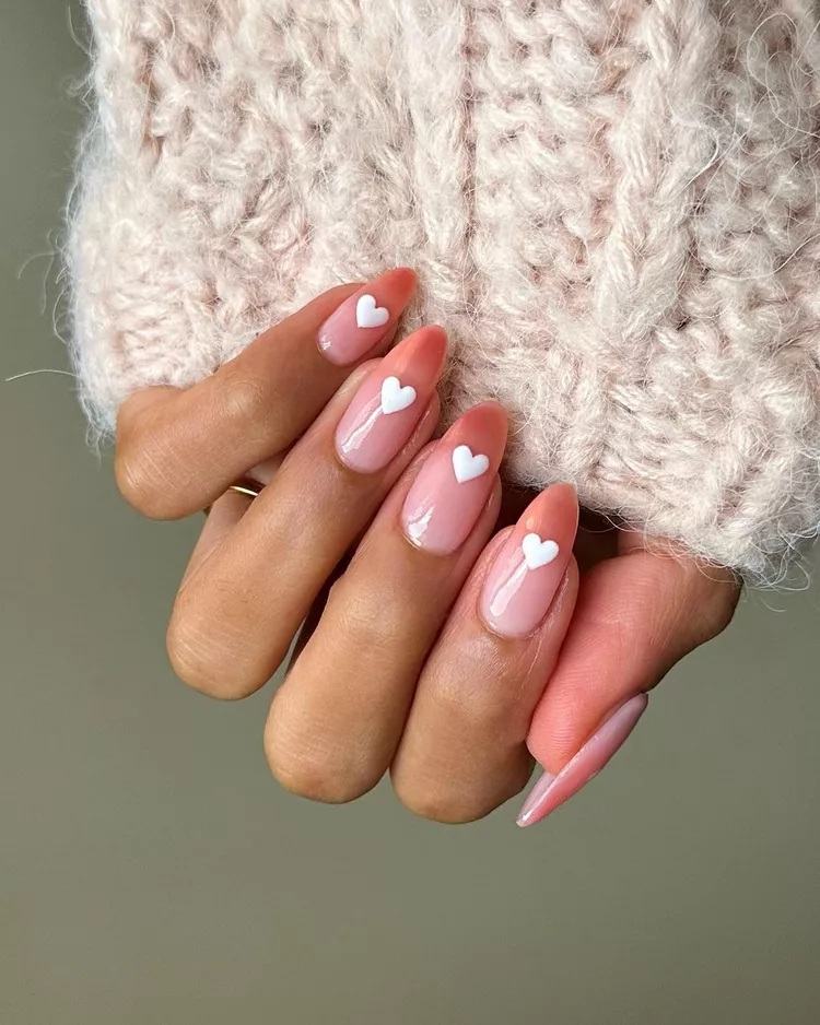 Add a small white heart in the middle of each blush nail for a romantic touch. This look is sweet, simple, and perfect for date nights.