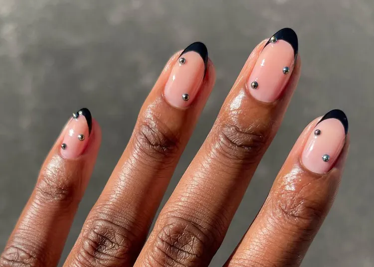 Dress up your black French manicure by adding tiny silver studs along the tips. The silver studs contrast beautifully against the jet-black color, giving your nails an edgy yet elegant look.