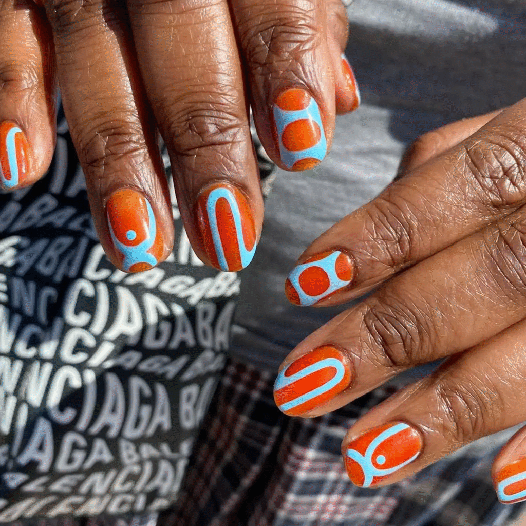 Fall’s vibrant colors make for perfect nail art. Use a nail art brush to create wavy lines with different fall colors. This abstract design gives off the energy of the season.