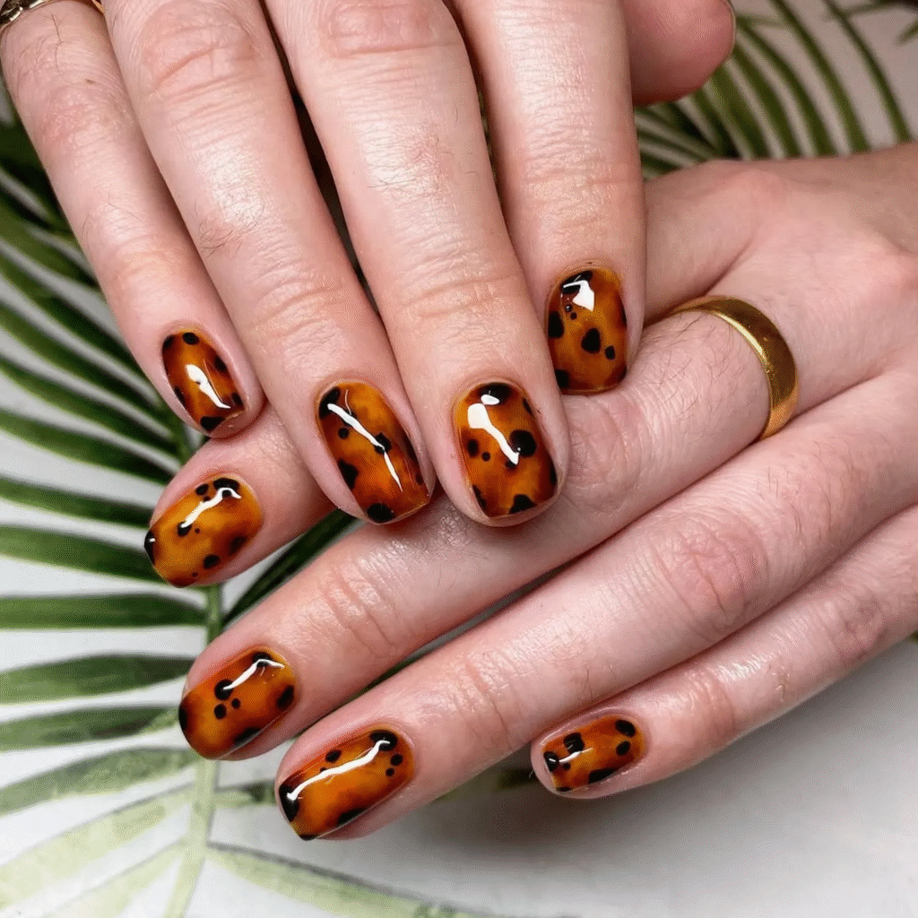 The caramel brown hues of tortoiseshell nails are perfect for autumn. This design brings a subtle yet stylish touch to short nails, and it works well with any nail shape.