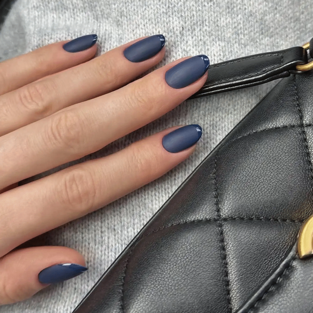 French manicures don’t have to be basic. Try a matte navy base with glossy tips for a fresh take on this classic design. It adds texture and is great for short nails.