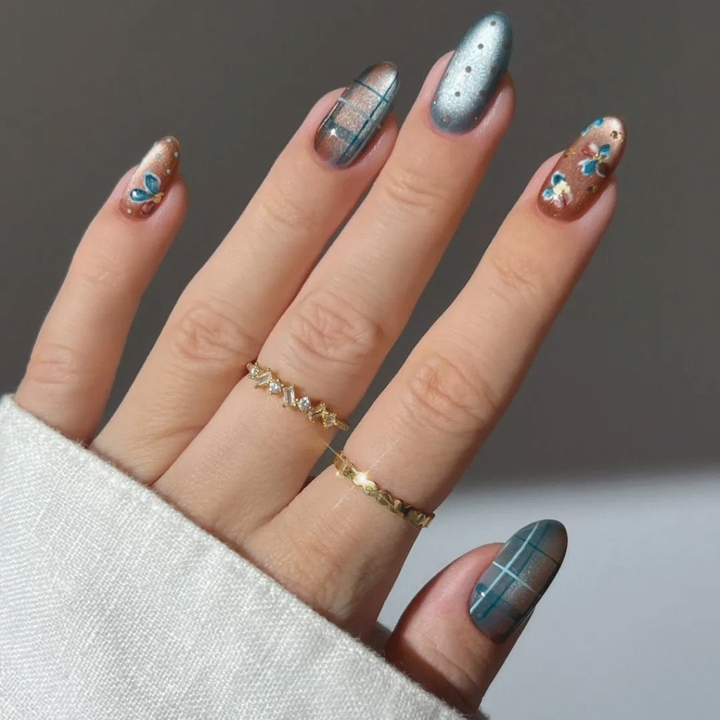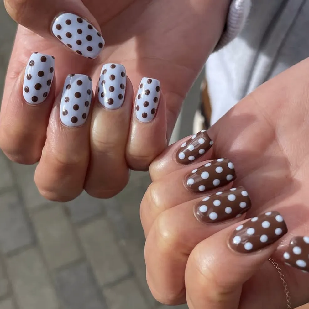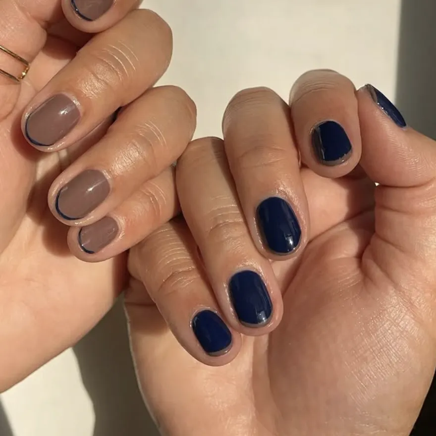 Blue and brown are the color stars of the season. You see them on sweaters, clips, bags, and even coffee mugs. The mix feels warm, trendy, and perfect for cozy weather. And the best way to join this trend? Paint it on your nails.