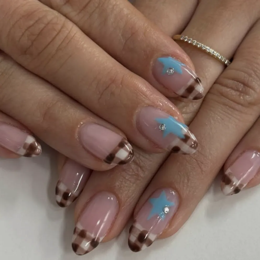 Blue and brown checks on your nails look like a picnic blanket. It’s cute, casual, and gives a soft country feel.