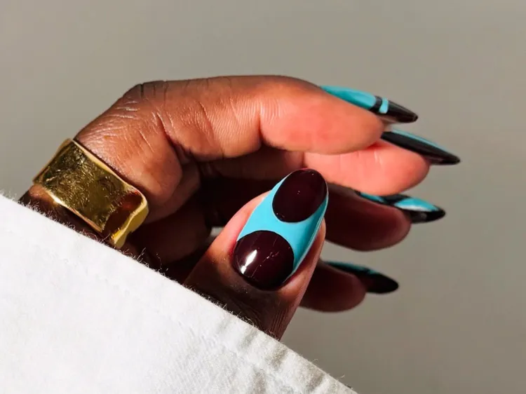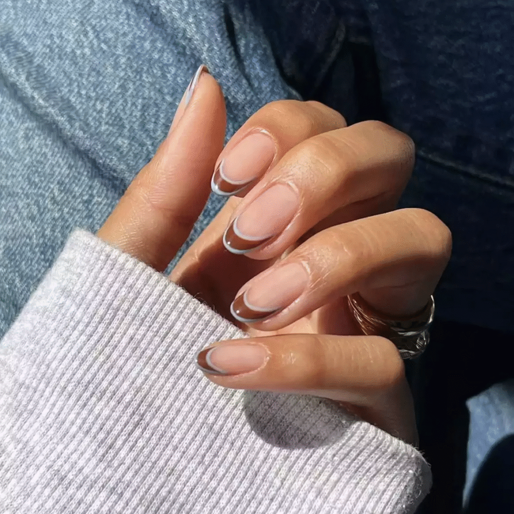This one is a twist on the classic French manicure. Instead of white tips, go for blue and brown. You can swap colors on each hand. It’s fresh, simple, and super modern.