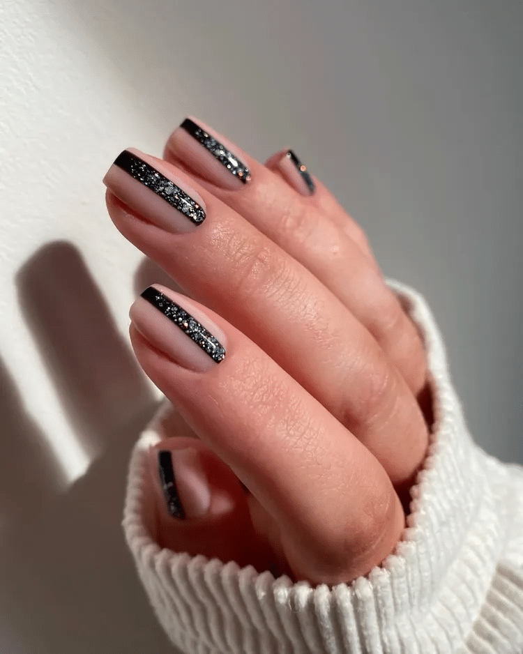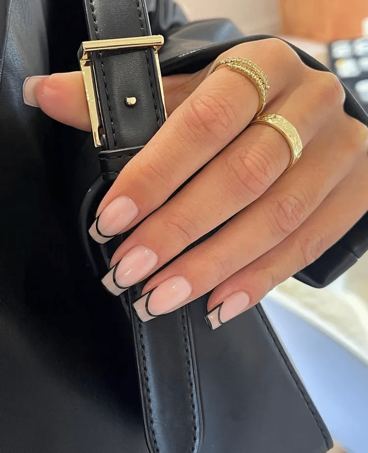 Think of this as the nail version of a little black dress — simple, timeless, and classy. Square-shaped nails with thin black lines look neat and elegant. This style suits those who love minimal fashion and a polished, put-together look.