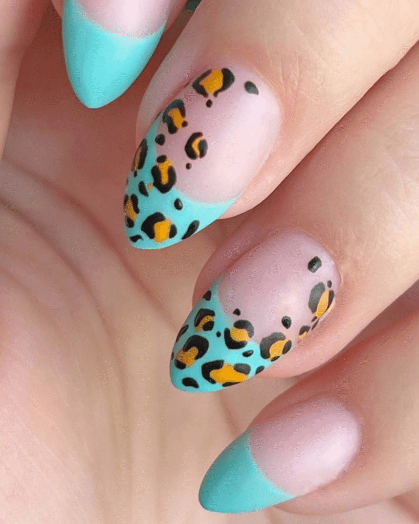 Use a thin brush dipped in the color of your choice to paint the natural curve of your nail tips for a classic look. You can also add playful details like squiggles, animal prints, glitter stars, or gold foil to make the design feel more extravagant and fun.