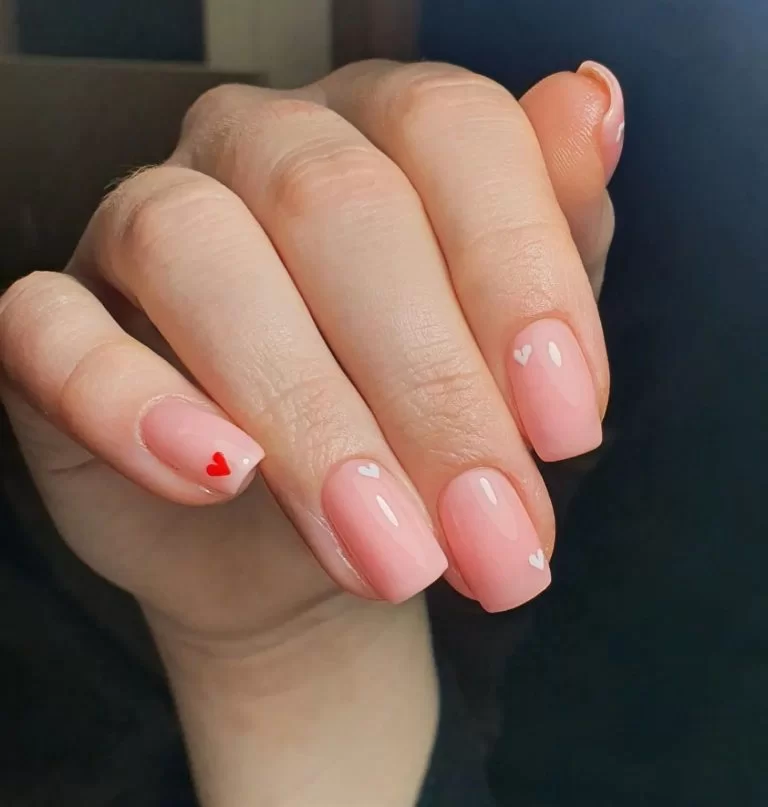 Wear your heart on your nails with this sweet design. It is perfect if you love a clean and simple look but want a small Valentine touch. Tiny hearts add charm without feeling too much.