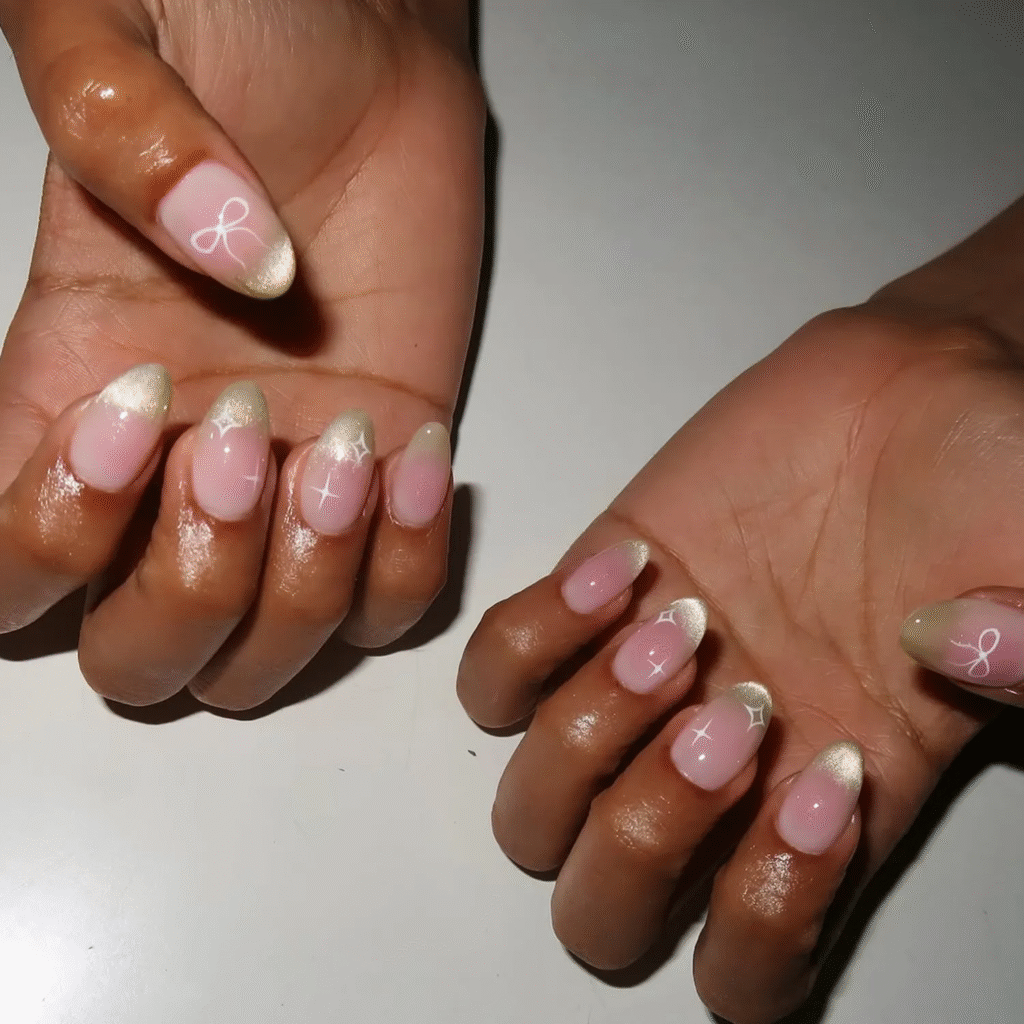 Sometimes all you need is a small accent. Adding a gold bow to classic French tips makes the nails feel simple but festive.