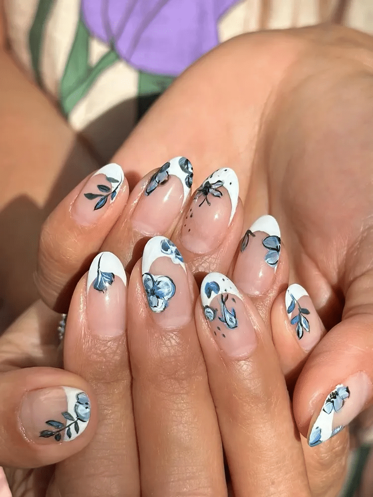This design starts with a classic French base. Soft watercolor art is layered on top. It feels artistic and calm.