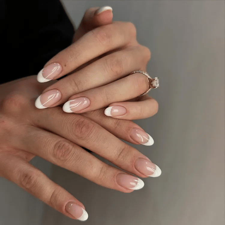 This is the classic French manicure. Nude base and white tip stay simple. Clean and elegant, it never goes out of style.