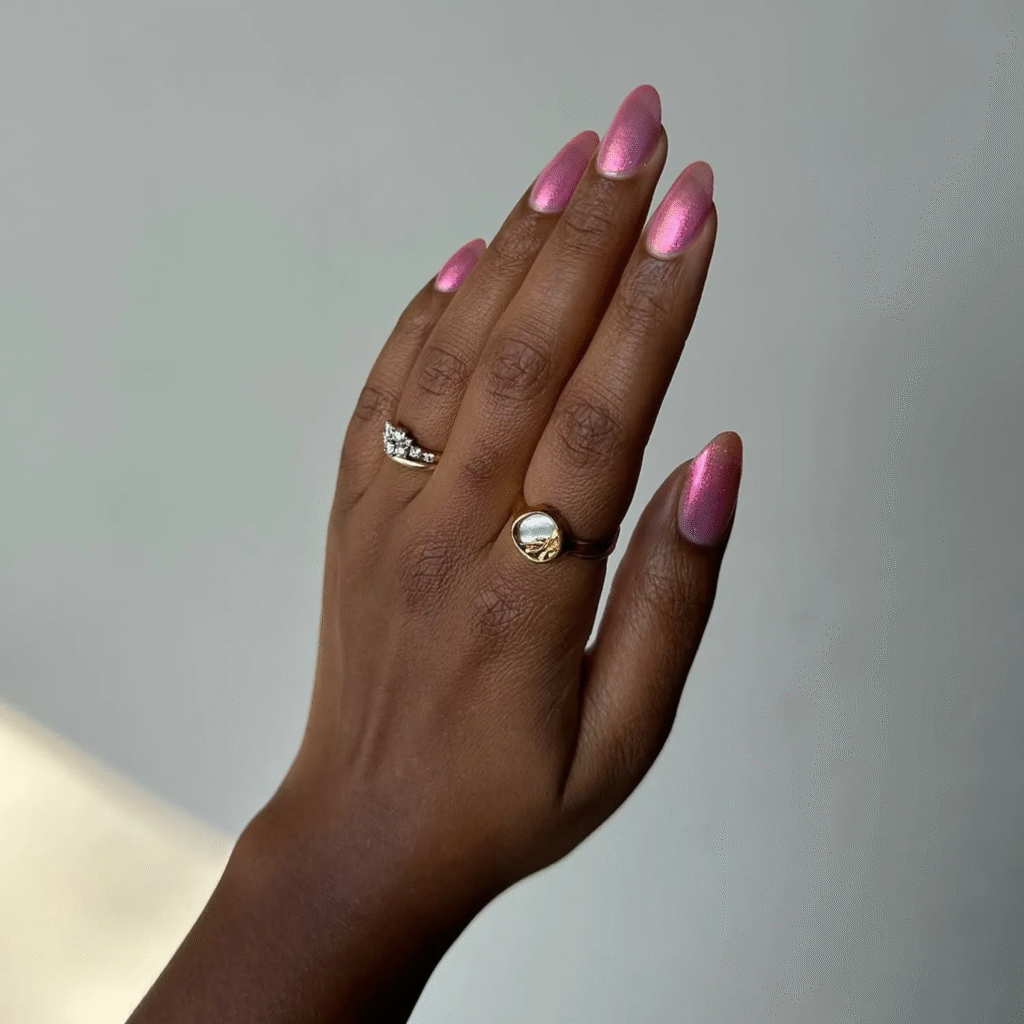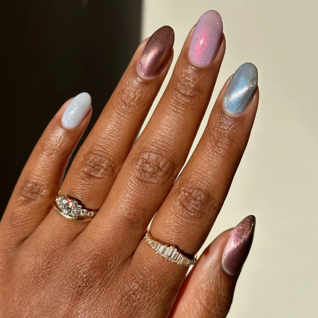 If you want something soft and delicate, consider a sheer, shimmery tourmaline look. The sparkle in the polish gives it a subtle opalescent effect. It’s feminine and elegant, perfect for those who love a touch of glamour.