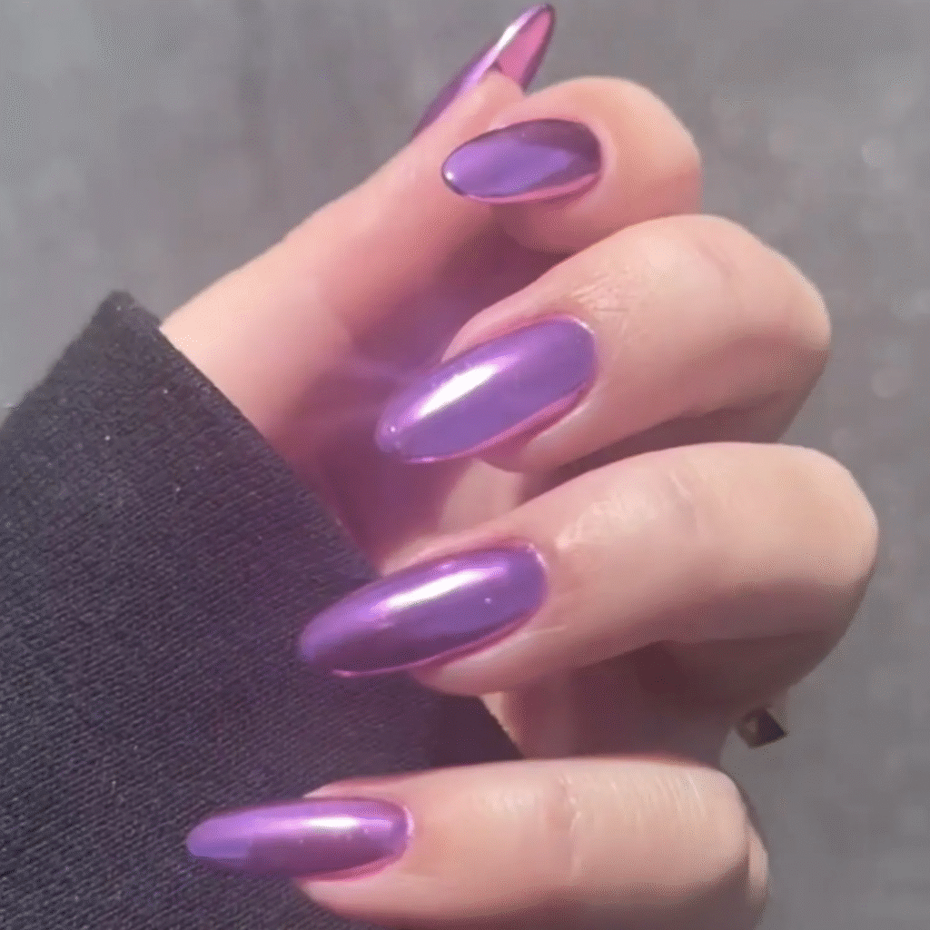 Purple never goes out of style, especially in the fall. Inspired by Versace’s 1994 fall collection, these vibrant violet chrome nails bring a pop of color to your manicure while still fitting the autumn aesthetic. It’s a unique way to bring an unexpected shade to your nails this October.