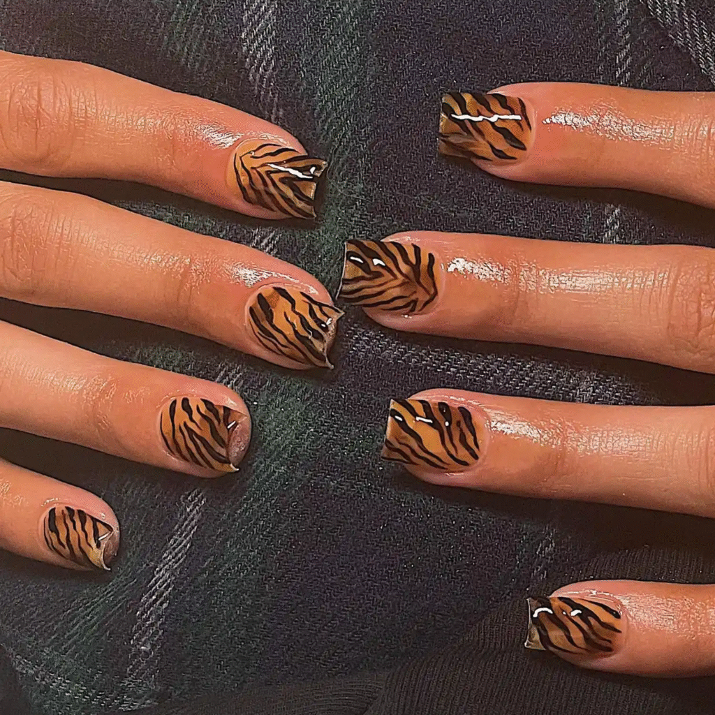 Animal prints are huge this fall, and zebra print nails are no exception. Pair these bold black-and-white stripes with a warm brown polish to complete the autumn animal-print trend. They’re a fun, stylish way to show off your wild side this season.