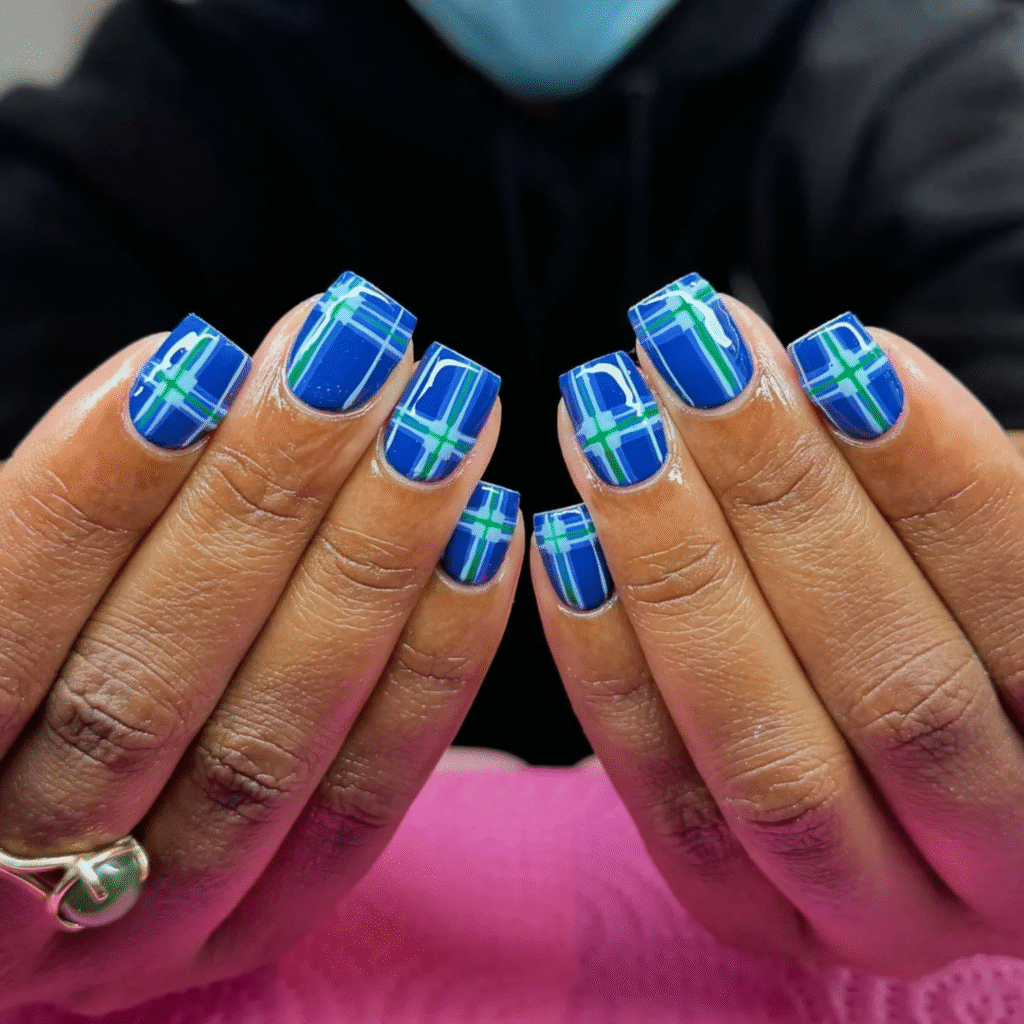 Plaid is always a fall favorite. These blue plaid nails give off cozy vibes, making them a perfect match for your autumn wardrobe. Whether you’re wearing a plaid scarf or sweater, these nails will match perfectly.