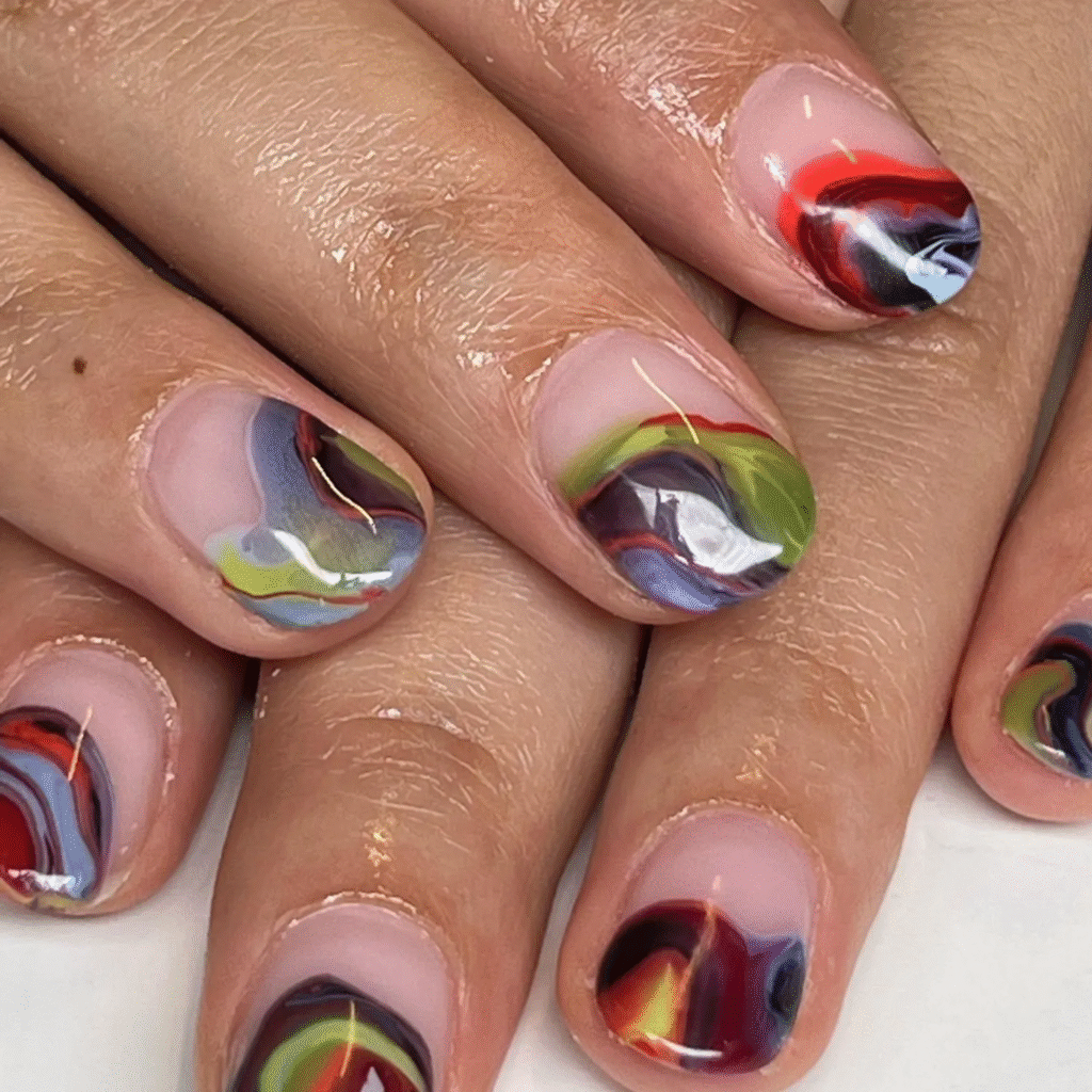 Abstract nail art is always in style, and this fall, it’s no different. Swirled designs in fall colors like orange, yellow, and brown will make your nails look like a work of art. It’s a trendy and creative way to wear fall colors.