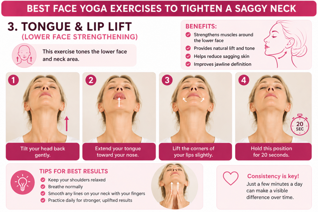 3. Tongue & Lip Lift (Lower Face Strengthening)
