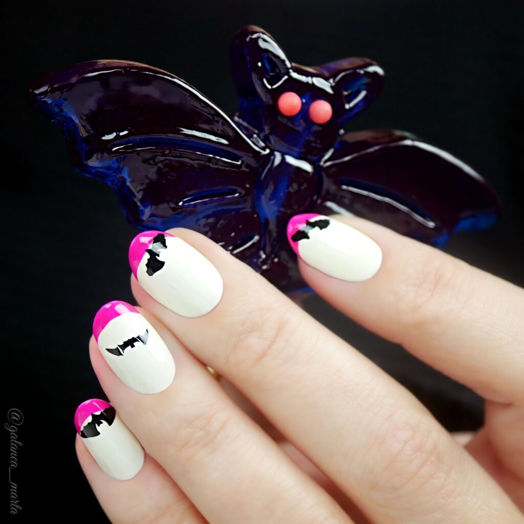 Bats are a Halloween favorite, and they âre perfect for your nails. Paint your nails with a dark purple or black base. Then, use white or silver nail art pens to create tiny bat silhouettes. The contrast of the bats against the dark background will give your nails an eerie yet stylish look. Itâ s a simple design that makes a big impact!