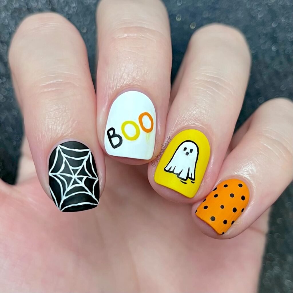 This year, Halloween nails are all about mixing fun and spooky with a touch of style. Whether you’re into cute ghosts or creepy skulls, there a design for everyone. You can mix and match designs to create your own spooky masterpiece. Just grab your nail polish, get creative, and get ready to show off your Halloween spirit with your nails!