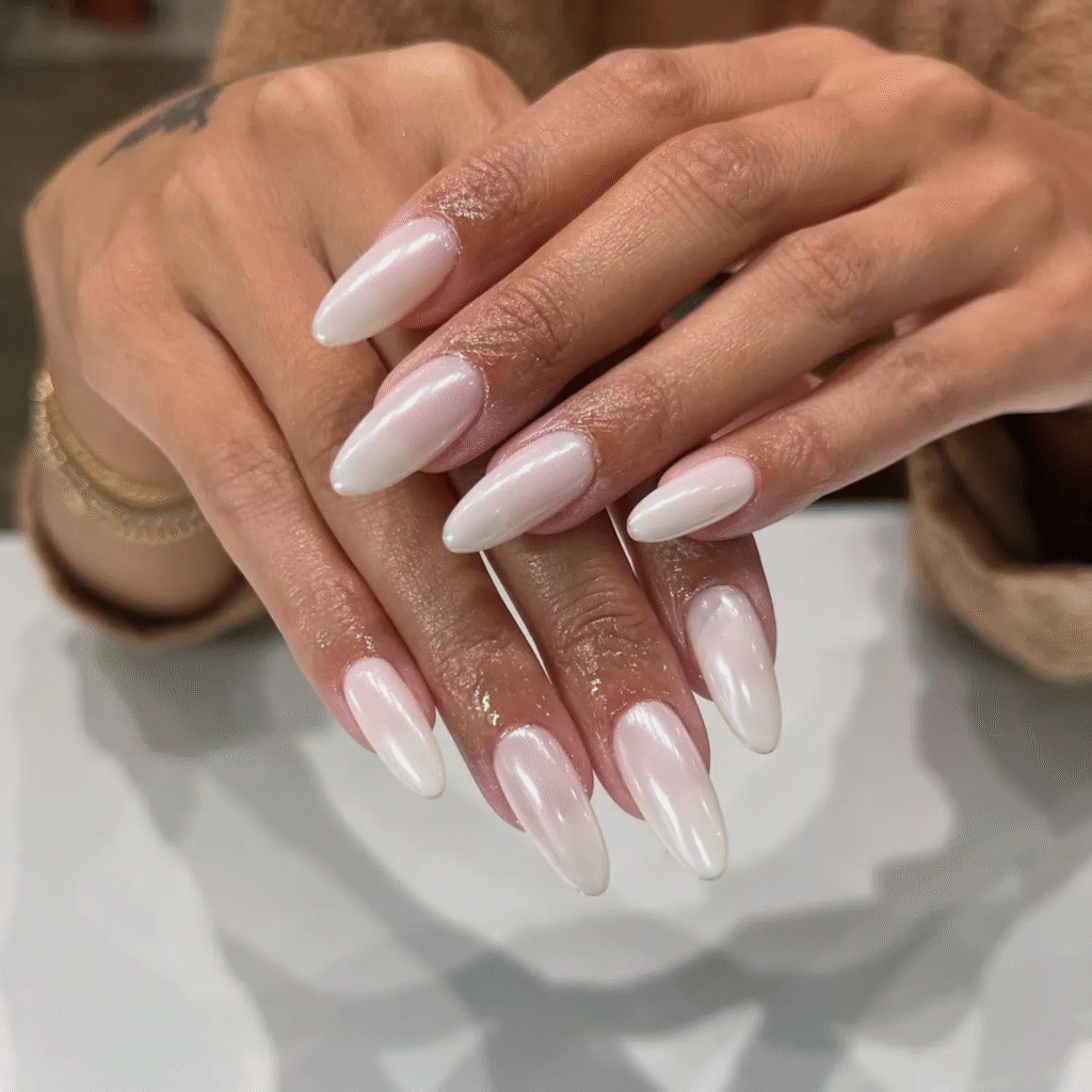 White nails are fresh and clean. A pearly finish adds soft shine and elegance. This color goes with every outfit.