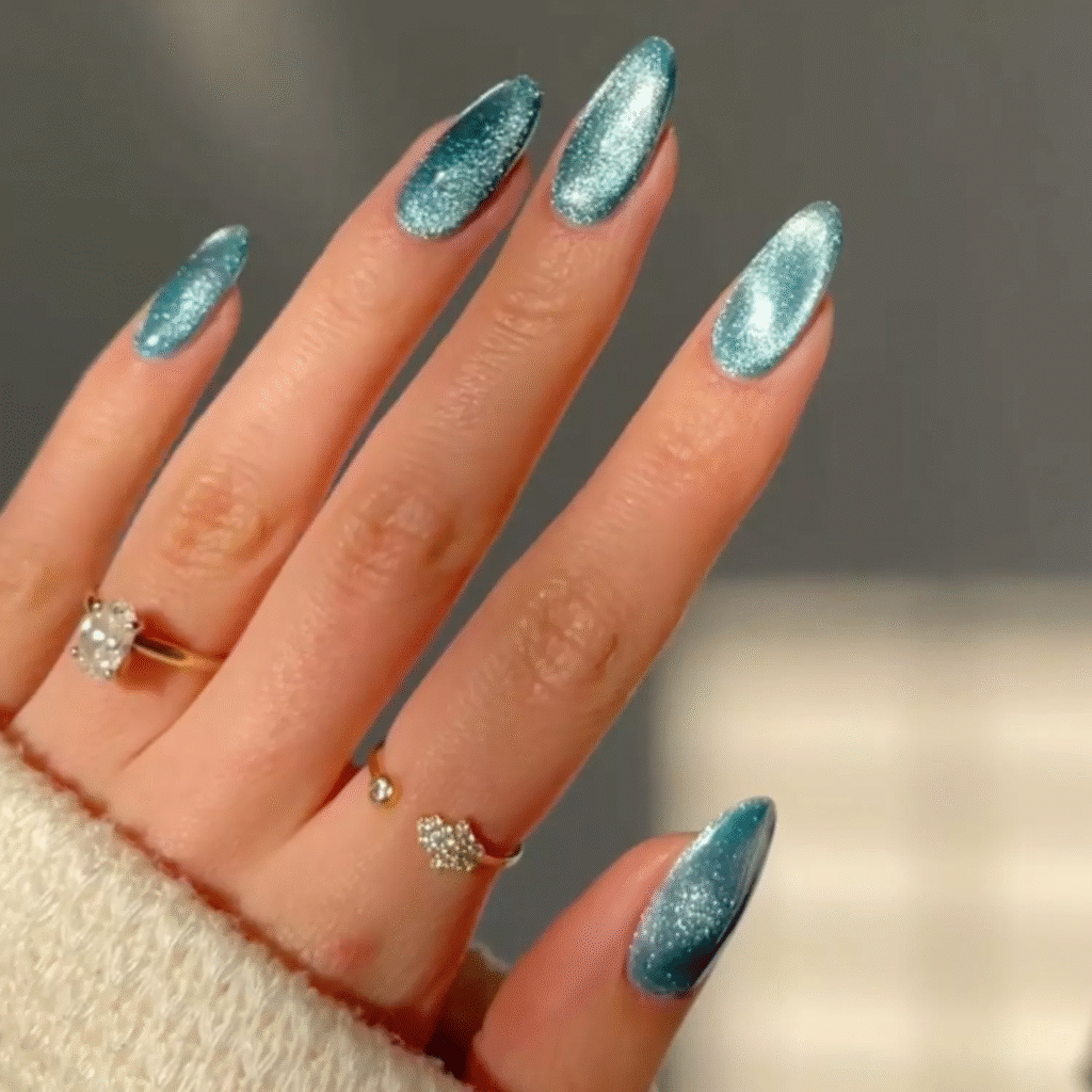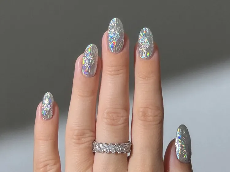 Silver chrome looks best on smooth shapes like almond or oval. The mirror finish reflects light and grabs attention fast. It feels futuristic and fun at the same time.